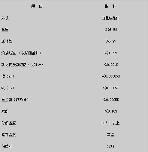 聚 合: 乳膠或丙烯酸單體聚合液、醋酸乙烯、氯乙烯等產(chǎn)品的引發(fā)劑,同時(shí)也是苯乙烯、丙烯腈、丁二烯等膠體發(fā)生共聚作用的引發(fā)劑。