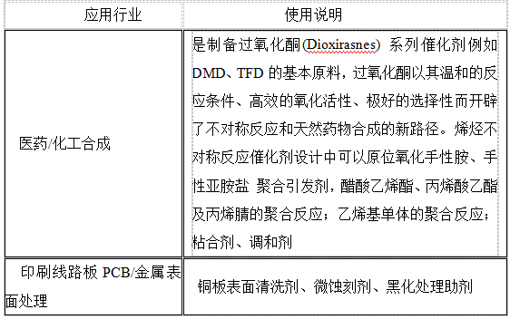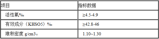 化學(xué)特性:過(guò)硫酸氫鉀復(fù)合鹽的活性物質(zhì)為過(guò)硫酸氫鉀KHSO5(或稱之為過(guò)一硫酸氫鉀)。具有非常強(qiáng)大而有效的非氯氧化能力,使用和處理過(guò)程符合安全和環(huán)保要求,因而被廣泛的應(yīng)用于工業(yè)生產(chǎn)和消費(fèi)領(lǐng)域。通常狀態(tài)下比較穩(wěn)定,當(dāng)溫度高于65℃時(shí)易發(fā)生分解反應(yīng)。比較活潑,易于參與多種化學(xué)反應(yīng),可作為氧化劑、漂白劑、催化劑、消毒劑、蝕刻劑等。